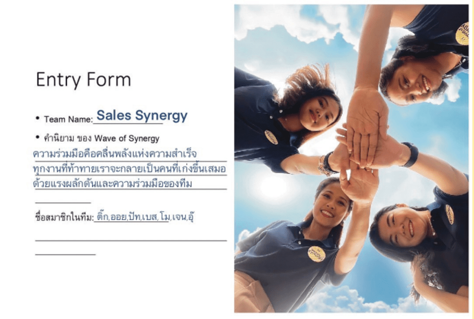 - Send photos through the group LINE Enter your team name, member names, and a short description of what the word Wave of Synergy means in your team’s opinion.